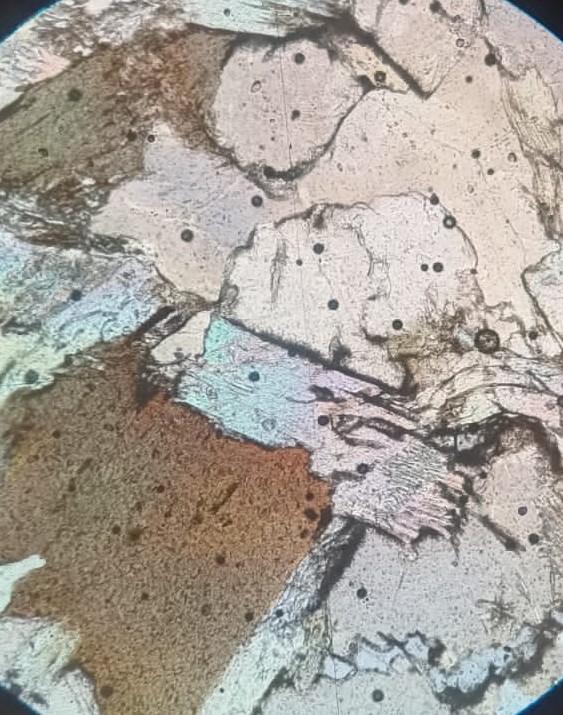 - Relieve: No marcado η˃ bálsamo. Al girarla cambia el relieve, débil cuando las trazas de exfoliación son paralelas al plano de vibración del nicol inferior y bajo cuando forman un angulo recto con este nicol.
